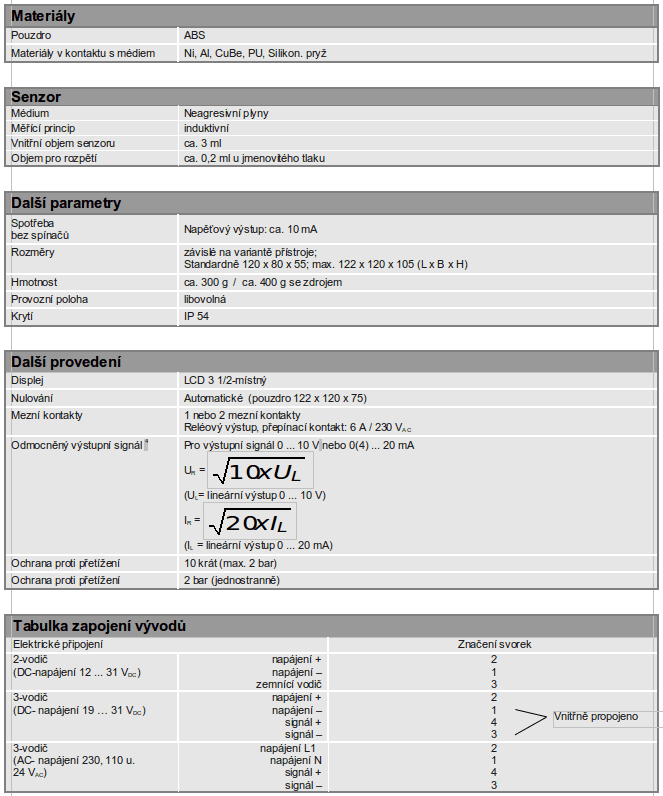- proudové a napěťové výstupní signály v 2- , 3- a 4- vodičové technice