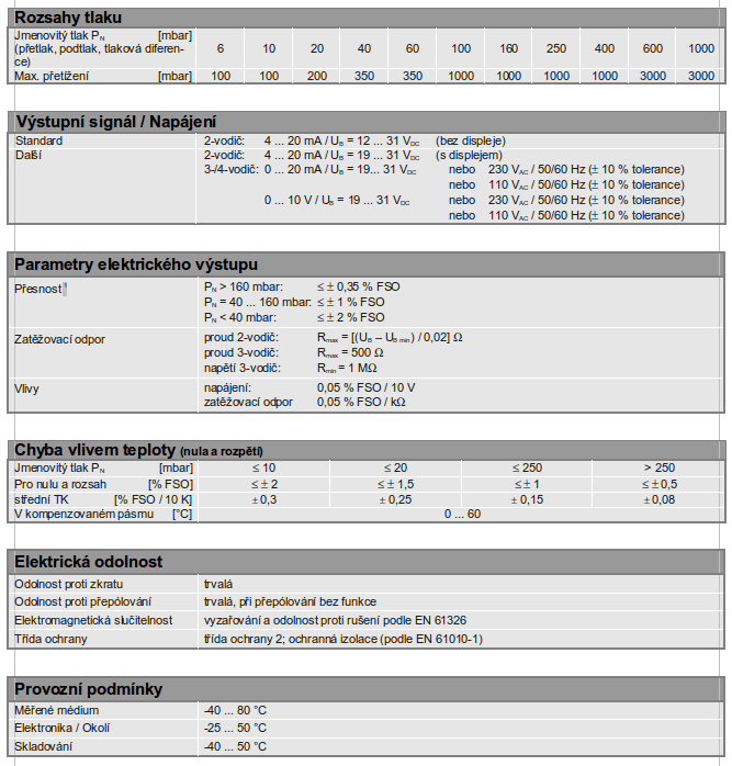 Relativní / diferenční / absolutní snímač tlaku, pro velmi nízké tlaky od 0,1 mbar, induktivní sensor, pro nasazení v průmyslu i laboratořích, diferenční rozsah od 0…0,1 mbar do 0…1000 mbar.
