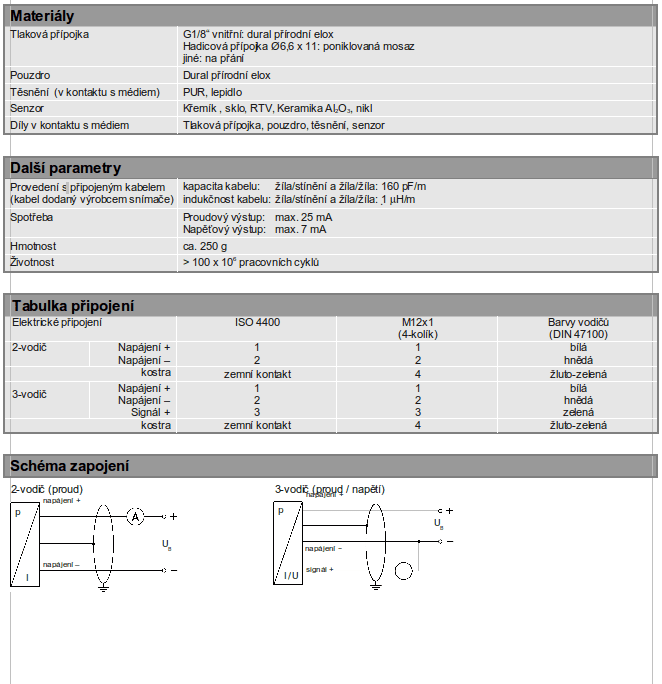 - provedení pro relativní, diferenční a absolutní tlak
