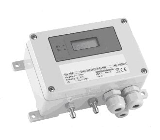 Snímač nízkých tlakových diferencí, polovodičový tenzometr, pro vzduch a neagresivní plyny, kompaktní duralové pouzdro, na přání modul displeje a spínačů, tlaková diference od 0…6 mbar do 0…1 bar.