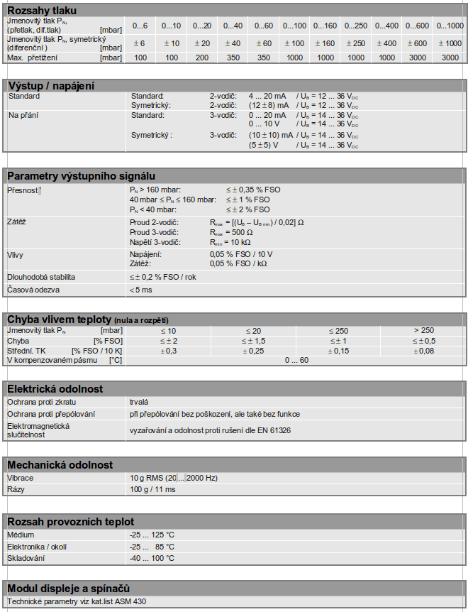 Relativní / diferenční / absolutní snímač tlaku, pro velmi nízké tlaky od 0,1 mbar, induktivní sensor, pro nasazení v průmyslu i laboratořích, diferenční rozsah od 0…0,1 mbar do 0…1000 mbar.