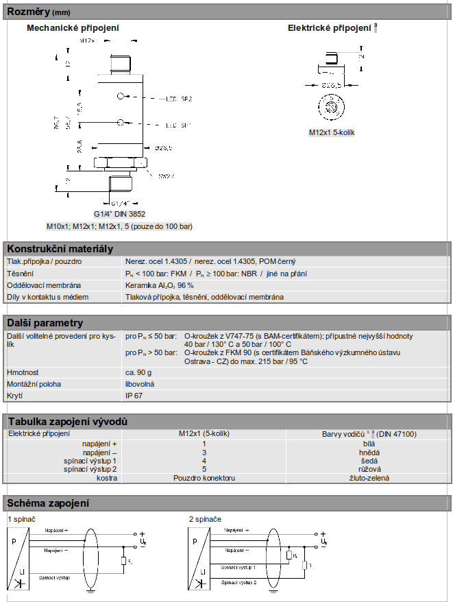 - elektrické připojení 5 – pólovým konektorem M12x1
