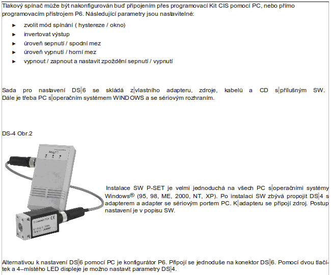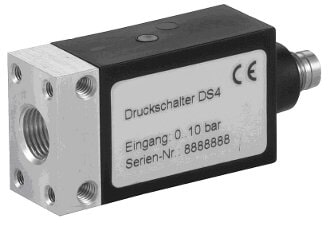 Elektronický tlakový spínač DS 4 je určen pro pneumatická a vakuová zařízení. Duralová tlaková přípojka a křemíková membrána senzoru umožňují nasazení v neagresivních plynech nebo tlakovém vzduchu. Pouzdro spínače je vyrobeno z plastu PA 6.6.