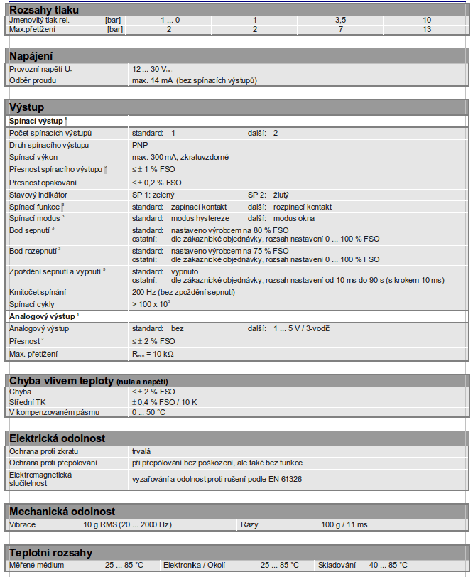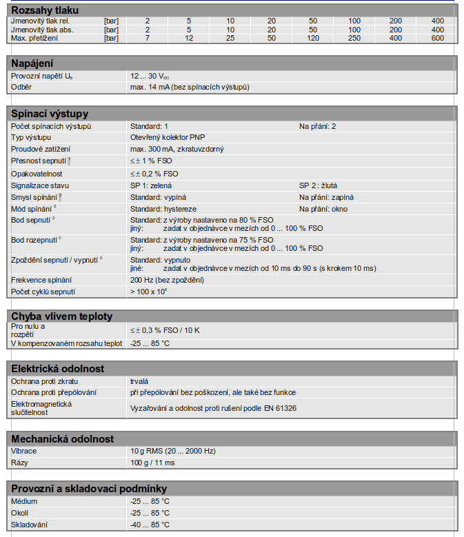 Průmyslový tlakový spínač pro hydrauliku, keramický tlustovrstvý senzor, 1 nebo 2 spínací výstupy, jednoduché nastavení pomocí adapteru nebo kofigurátoru, jmenovité rozsahy od 0…2 bar do 0…400 bar.