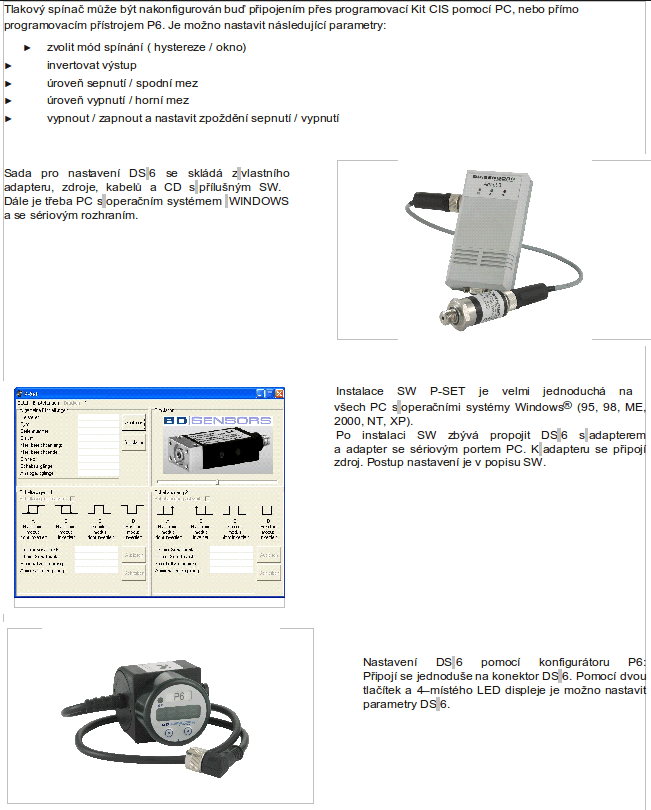 Nová mikroprocesorová jednotka elektroniky nabízí kromě standardních mnoho dalších možností, jak zajistit optimální přizpůsobení spínače požadavkům procesu. Spínací výstupy, jejichž stav je indikován vícebarevnými LED diodami, mohou být pohodlně a rychle nastaveny pomocí soupravy adaptéru a sw pro PC nebo konfigurátorem P6.