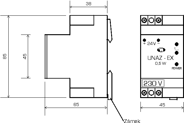 Napájecí zdroj UNAZ – EX je určen pro napájení převodníků, konvertorů, galvanických oddělovačů či jiných elektronických zařízení, které jsou umístěny v prostředí s nebezpečím výbuchu. Zdroj je určen pro umístění na lištu DIN TS35. Certifikováno v FTZÚ Radvanice pod č. FTZÚ 02 ATEX 0190.