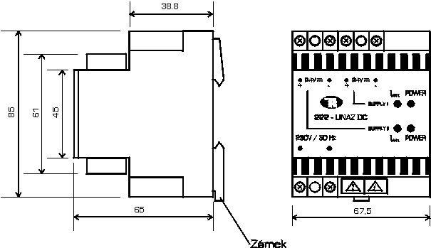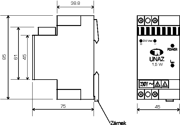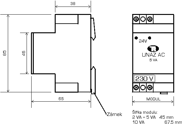 | – šířka modulu | viz. obr. Zástavbové rozměry zdrojů 222 – UNAZ DC | |