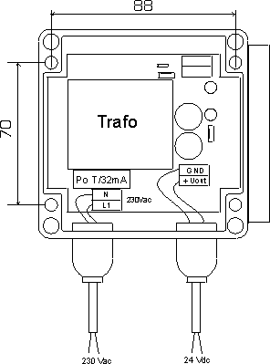 Napájecí zdroj pro zařízení, které je nutno napájet střídavým napětím, výstupní výkon 2VA, 3.2VA, 5VA nebo 10VA , výstupní napětí 6, 9, 12, 15, 18, 24V.