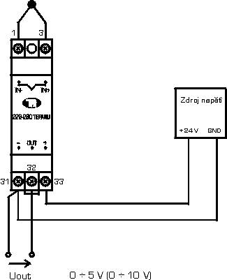 | – napájecí napětí převodníku | 10 až 30 VDC (ochrana proti přepólování napájecího napětí) | |