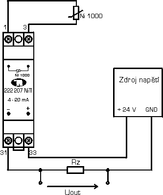 Převodník je určen pro převod signálu z odporových vysílačů teploty Ni 1000 na normalizovaný proudový výstup 4 až 20 mA. Výstupní signál je lineární s teplotou.Převodník je určen pro umístění na lištu DIN TS35.