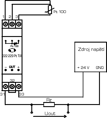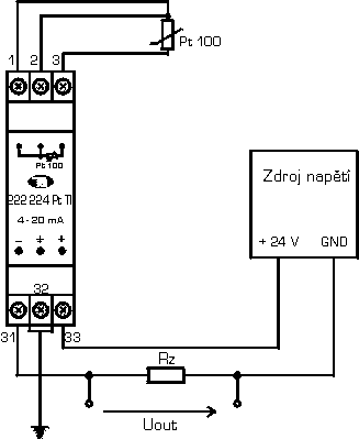 | Pt 100 ( a = 0,00385 /°C) | -200 ÷ 850°C | 25 K | Připojení snímače 2, 3, 4vodičově. 3 a 4vodičové zapojení kompenzuje vliv odporu přívodů. | |