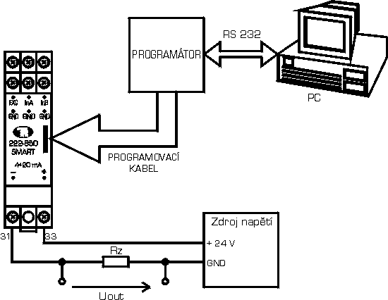 - Obr.3: Zapojení výstupu programovatelného převodníku