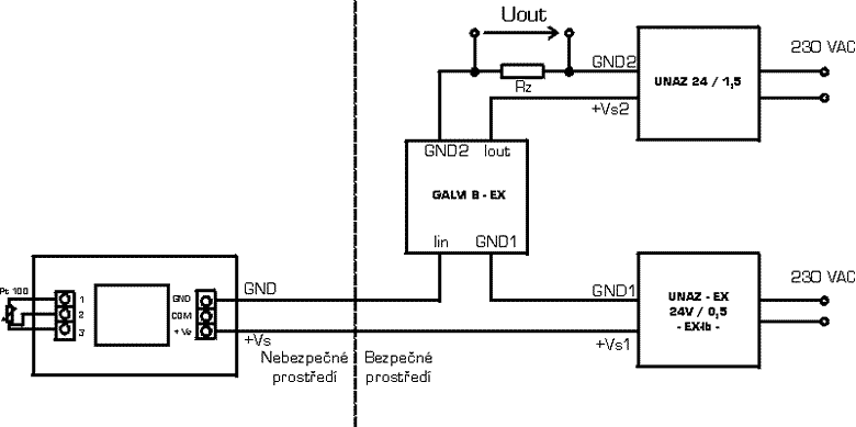 Převodník je určen pro převod signálu z odporových vysílačů teplotyPt 100 na normalizovaný proudový výstup 4 až 20 mA. Výstupní signál je lineární s teplotou.Převodník je určen pro umístění do prostředí s nebezpečín výbuchu, kde dostačuje ochrana krytím IP 44.