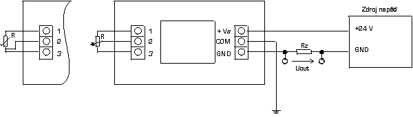 - Obr. 3b: Zapojení převodníku do obvodu - výstup 4 až 20 mA