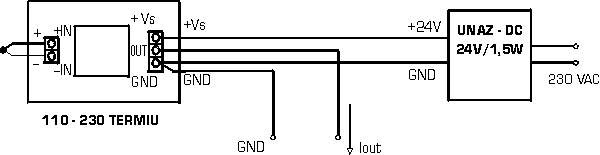 Signál z teplotního vysílače je přiveden na vstup převodníku. Obvod pracuje jako pasivní vysílač v proudové smyčce. Výstup převodníku slouží zároveň k jeho napájení.Převodník není vybaven galvanickým oddělením vstupního a výstupního signálu.