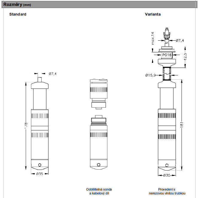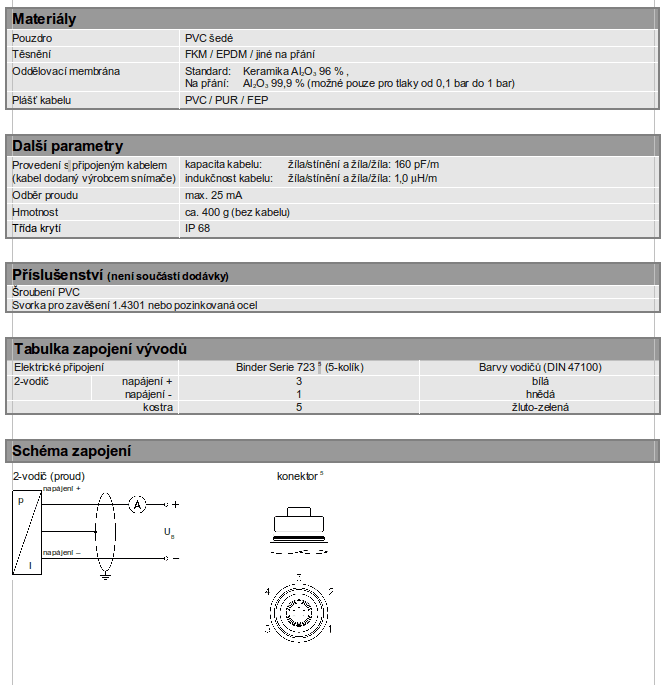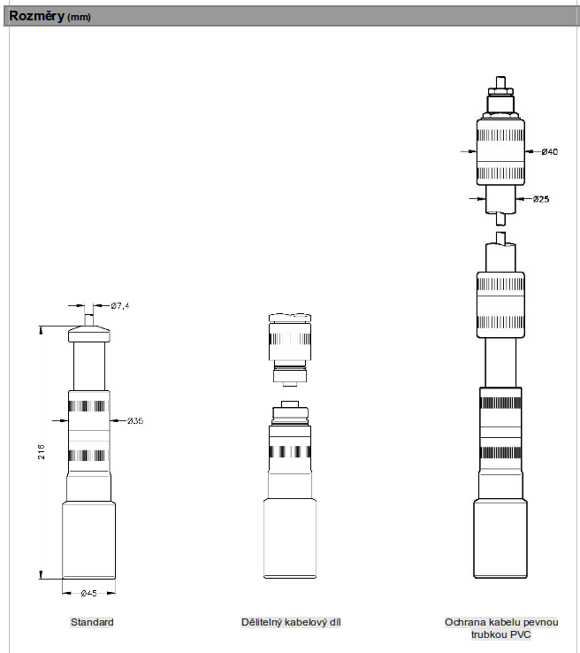 Plastová ponorná sonda byla vyvinuta pro měření výšky hladiny agresivních médií. Základním prvkem je kvalitní kapacitní senzor s keramickou membránou.