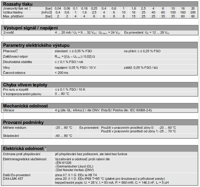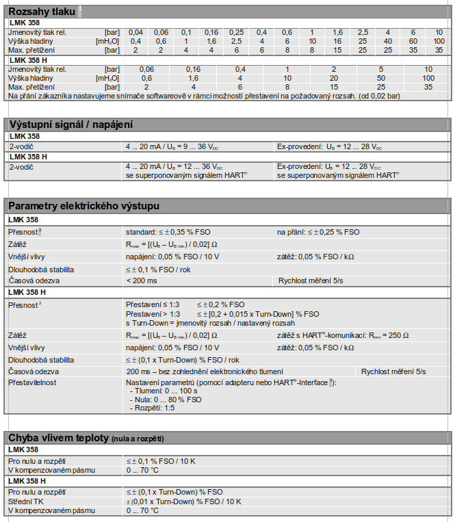 - přesnost LMK 358 dle IEC 60770: 0,35 % FSO / 0,25 % FSO
