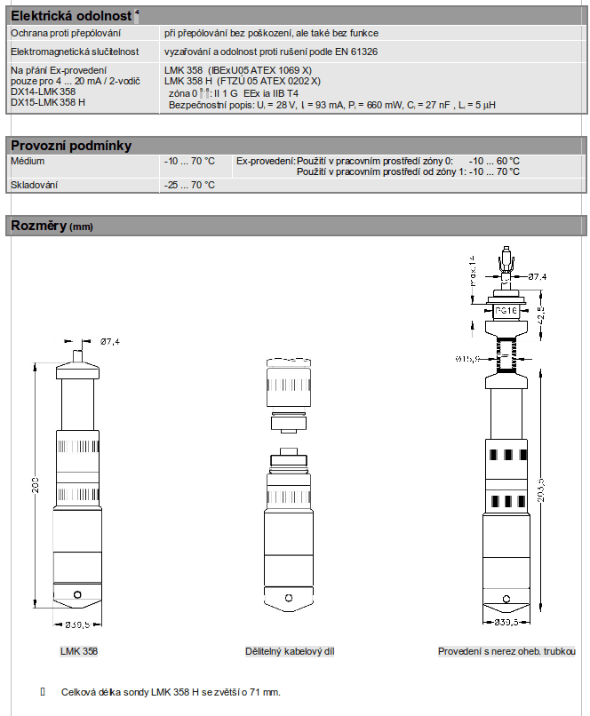 - LMK 358H: FTZÚ 05 ATEX 0202 X