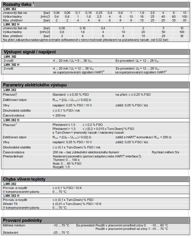 - přesnost LMK 382 H: 0,2 % FSO IEC 60770