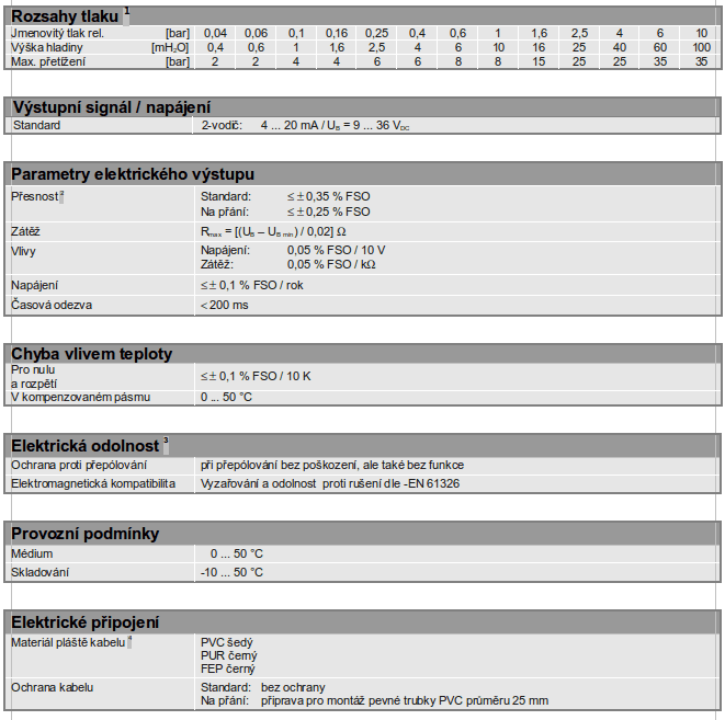 - přesnost dle IEC 60770: 0,35 % FSO