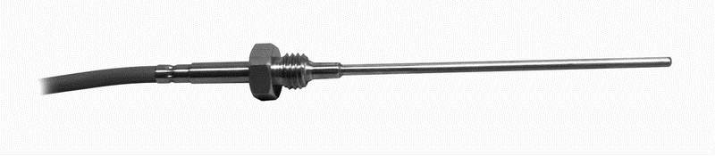 Jednoduchý izolovaný termoelektrický snímač typu “K“ v pouzdře z nerez oceli, zakončeném pružinou, která zvyšuje odolnost vodiče proti ohybu. Kompenzační vedení má průřez 2 x 0,5mm. Plášť termočlánku je v mater. provedení INCONEL 600 (2.4816) o průměru 3mm.