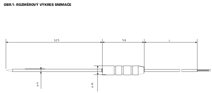 Čidlo snímače je uloženo v nerezovém pouzdru na kterém je našroubována teflonová rukojeť. Čidlo je zapojeno dvouvodičoě. Vodič je v provedení s teflonovou izolací.