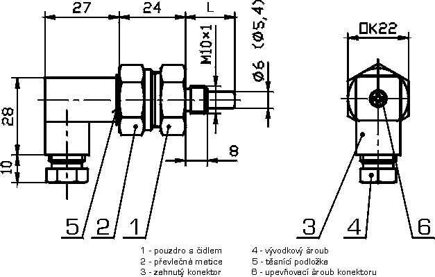 Standardně se TSK – Pt dodává se závitem M10x1. Po konzultaci s výrobcem je možno dodat TSK – Pt s jiným závitem.