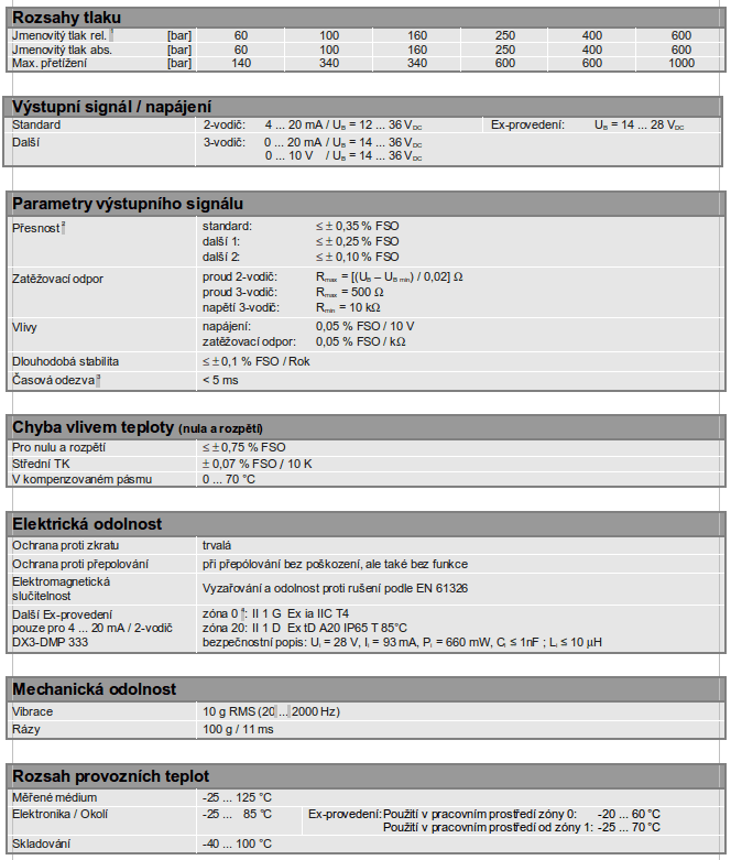 Tyto vlastnosti ve spojení s vynikajícími metrologickými parametry DMP 333, stejně jako vynikající stabilita nuly nabízí uživateli hydraulických zařízení spolehlivý, robustní snímač tlaku s jednoduchou obsluhou.