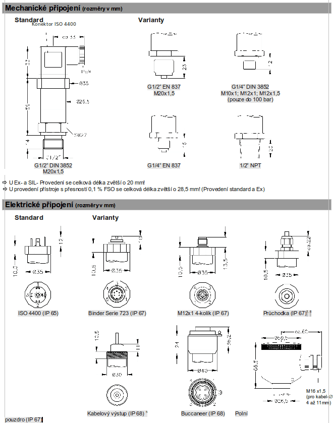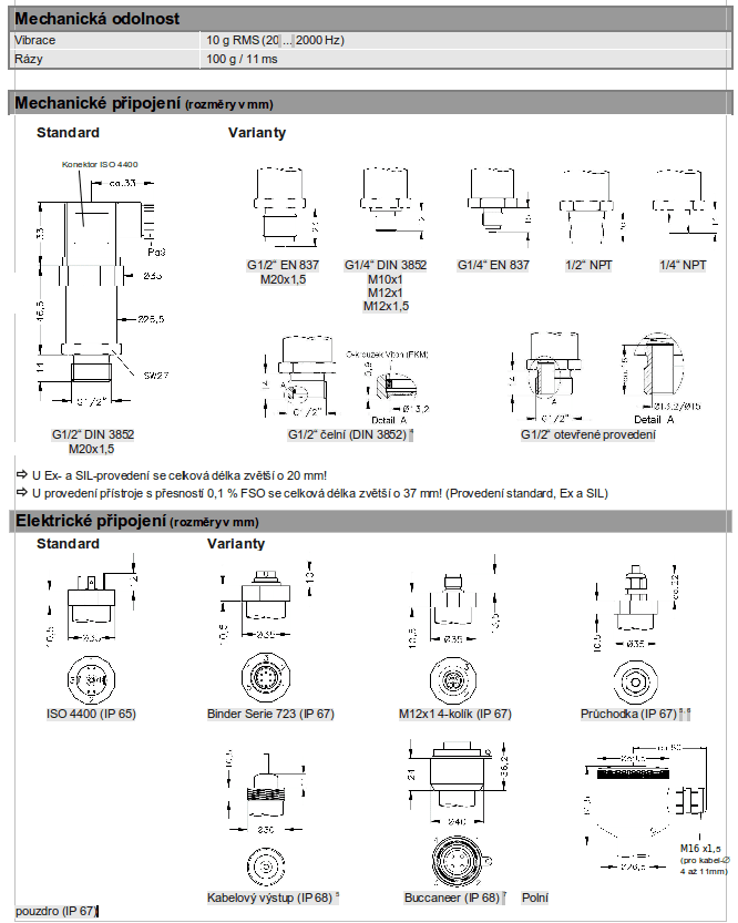 Tento snímač je k dispozici v následujících mechanických provedeních: