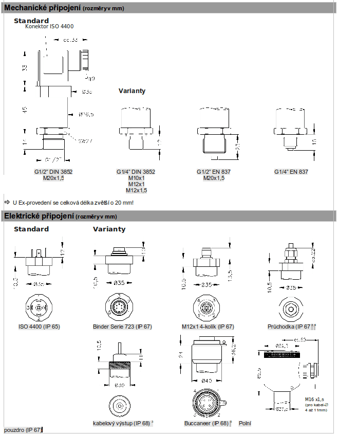 - Varianta: provedení Ex (pouze pro 4 … 20 mA / 2-vodič) TÜV 03 ATEX 2005 X