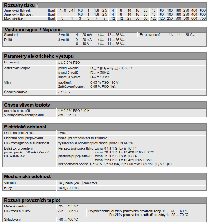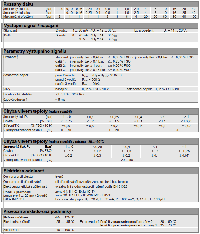 Široký výběr normovaných výstupních signálů stejně jako elektrických a mechanických přípojových možností, pokrývá téměř všechny aplikační požadavky vyskytující se v praxi. Mimoto je možnost, DMP 331 nasadit v explosivních částech od zony 0 / 20.