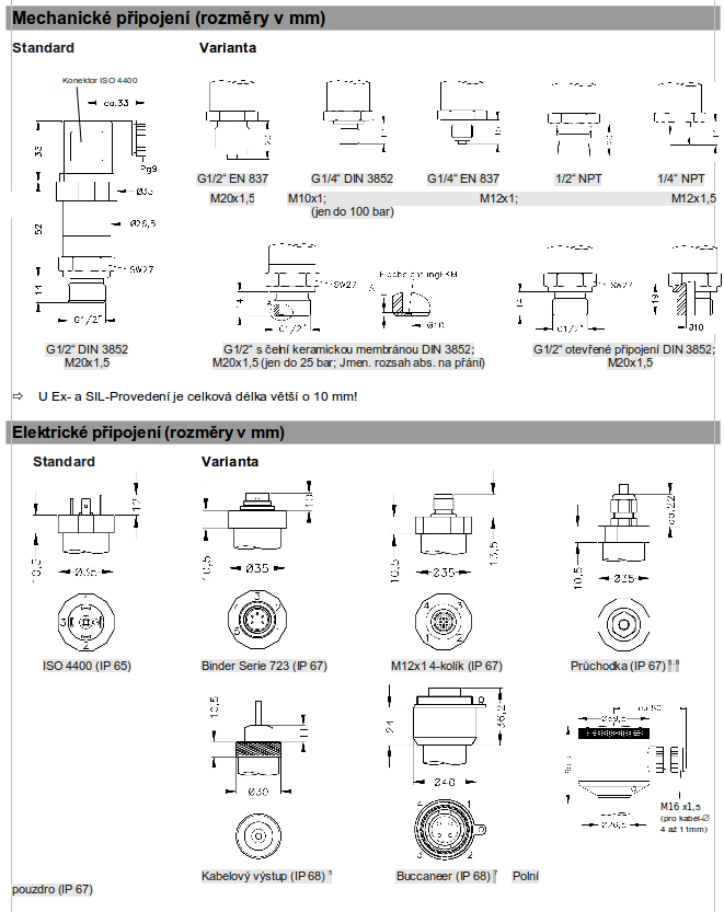 standard: otevřená tlaková přípojka G1/2″ s keramickým sensorem