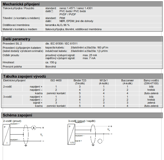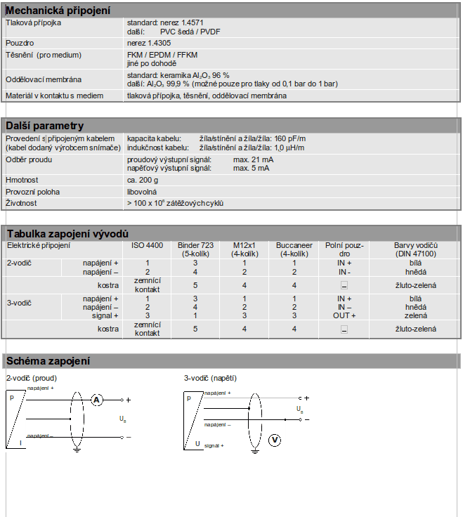 - kapacitní keramický sensor bez olejové náplně s vysokou odolností proti agresivním mediím jako jsou kyseliny a louhy
